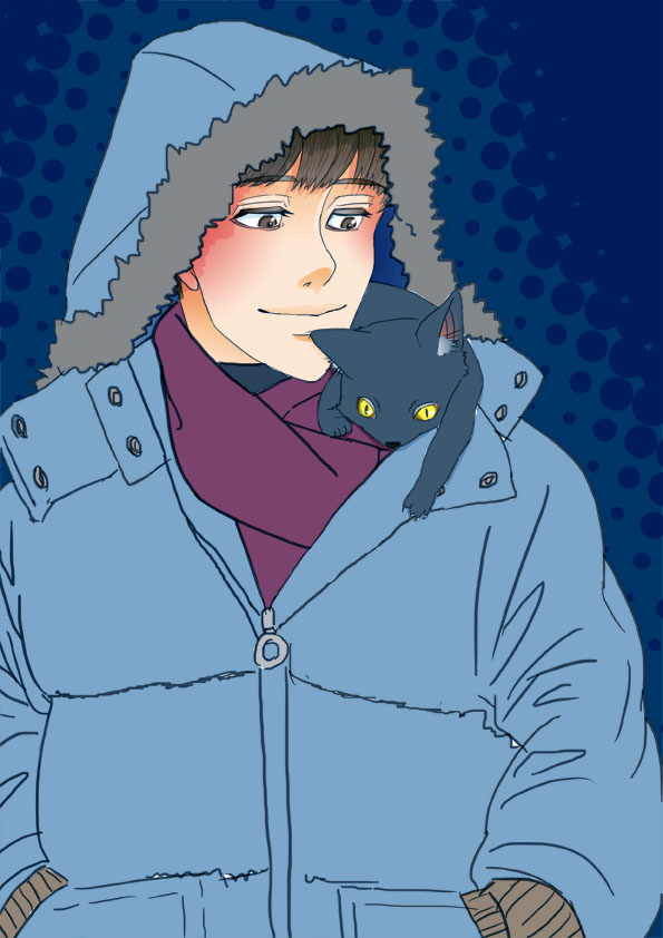 本当は、夜道を背景に描きたかったけれど、断念。